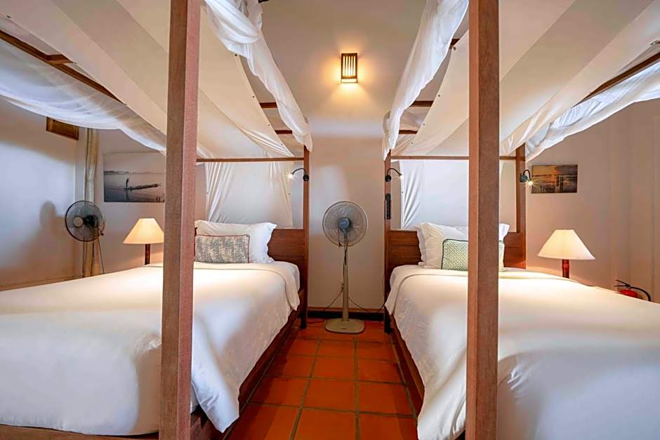 Aber warten Sie, der Spaß hört nicht beim Faulenzen am Strand auf! Verwöhnen Sie Ihren Gaumen im On The Rocks, dem reizvollen hauseigenen Restaurant, das eine Mischung aus vietnamesischer und europäischer Küche serviert. Stellen Sie sich vor, wie Sie frische Meeresfrüchtegerichte genießen, die vom Reichtum des Ozeans singen, oder klassische europäische Speisen schmecken, während Sie die atemberaubende Aussicht von Ihrem Tisch aus aufsaugen. Für Reisende, die ein einzigartiges kulinarisches Erlebnis suchen, ist hier jede Mahlzeit ein Fest für die Sinne. Greifen Sie zu ein oder zwei Cocktails, während Sie den Sonnenuntergang beobachten, der den Himmel in Orange- und Rosa-Töne taucht – das ist die perfekte Art, Ihren Tag im Paradies zu beenden!