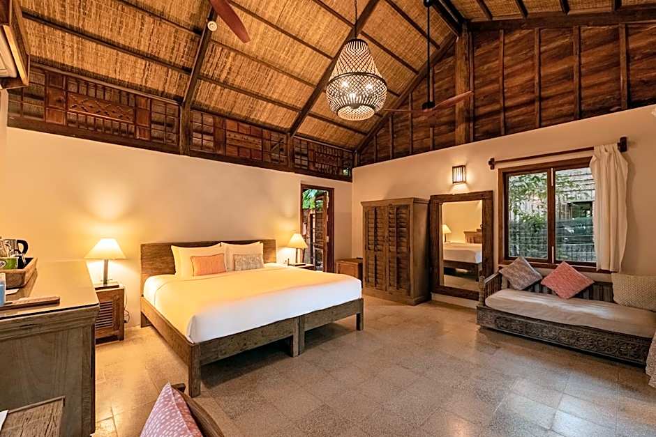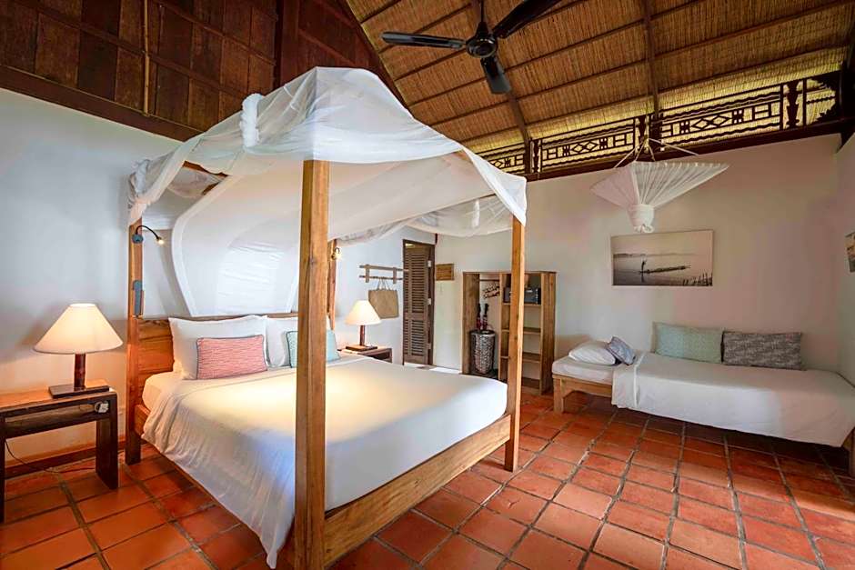 Facing the sea, this fisherman-style bungalow can sleep up to 3 guests. It features AC Evening Breeze®. The open-air bathroom has a shower and toiletries.